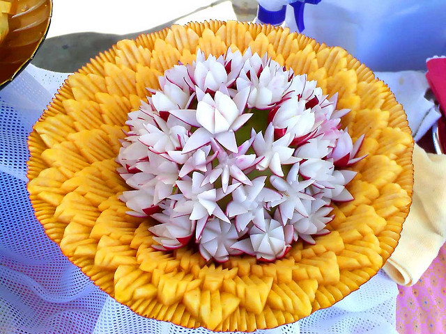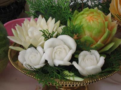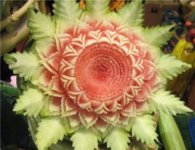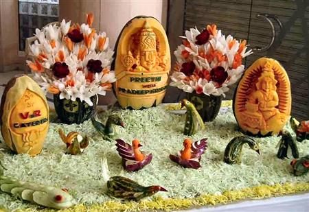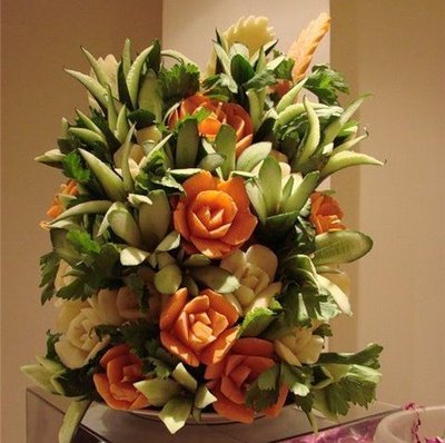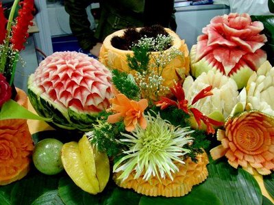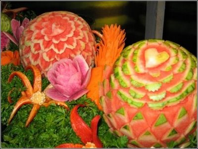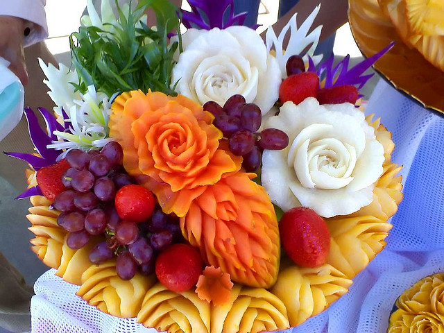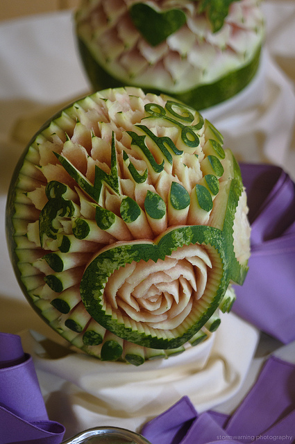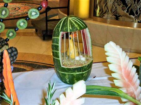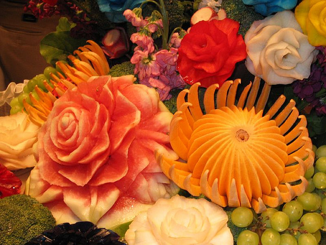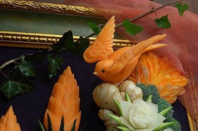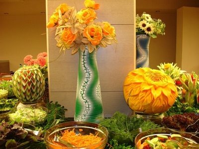 To quench the appetite we take vegetables and fruits but we never thought of another use of vegetables & Fruits. Yes, many people have used vegetables & fruits for sculpting and really it is an amazing idea of creativity of carving on vegetables and fruits. These edible items have been used to decorate the buffet of a special occasion or otherwise. It is nice to see the decorative food with appetizing stuff which capture the attention of people at a glance. The concept of buffet is totally changed and to decorate the food in beautiful manner such as carving/sculpting vegetables and fruits for unexceptional manner is now a part of party food.