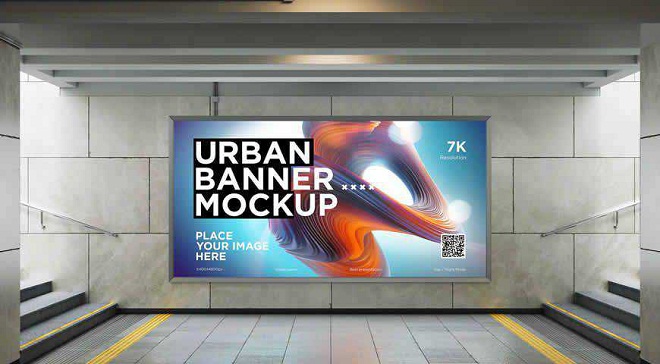 City Lightbox Banner Mockup in Subway