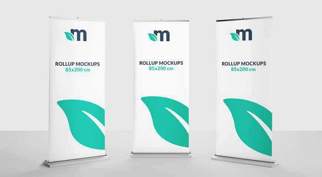Three Roll-Up Banner Mockup Templates