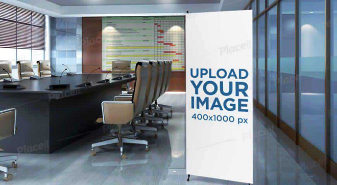 Vertical Banner Mockup in a Meeting Room