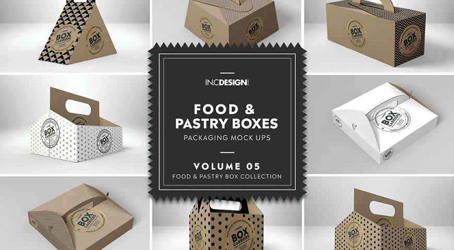 Food Pastry Carrier Boxes Mockup Templates