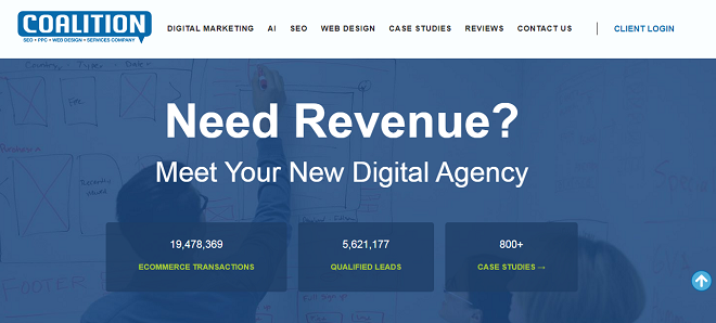 Headquarters: Los Angeles, CA Avg. Hourly Rate: $50 - $99 / hr Contact: sales@coalitiontechnologies.com / +1 (888) 506-7096 Focus: 70% Search Engine Optimization, 10% Pay Per Click, 10% Web Design, 10% Web Development