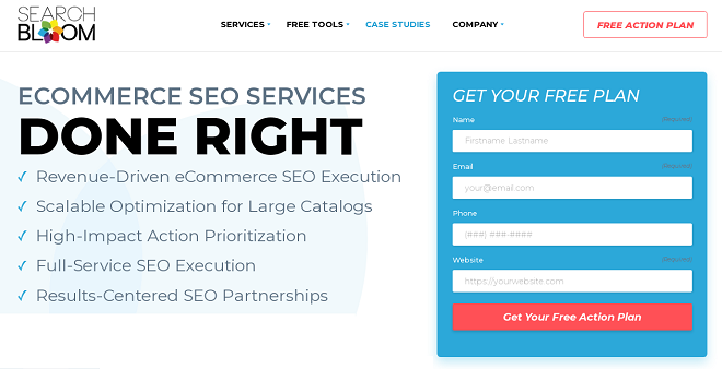 Headquarters: South Jordan Avg. Hourly Rate: $100 - $149 / hr Contact: hello@searchbloom.com / +1 801.590.4051 Focus: 65% Search Engine Optimization, 25% Pay Per Click, 10% Conversion Optimization